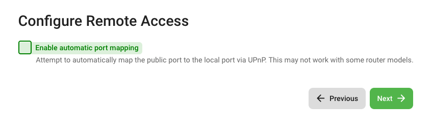 1. Uncheck Enable automatic port mapping. Click Next.
