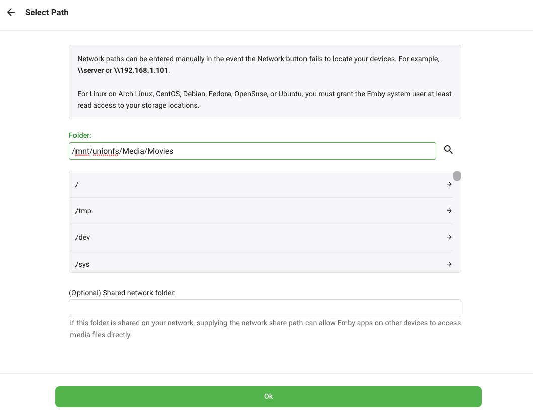 2. Type in or choose /mnt/unionfs/Media/Movies. Click OK.
