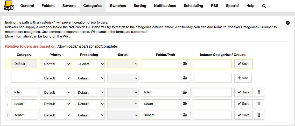 You will need a category for each instance of sonarr/radarr/lidarr [for example, if you have a radarr and radarr4k you will need a category for each]