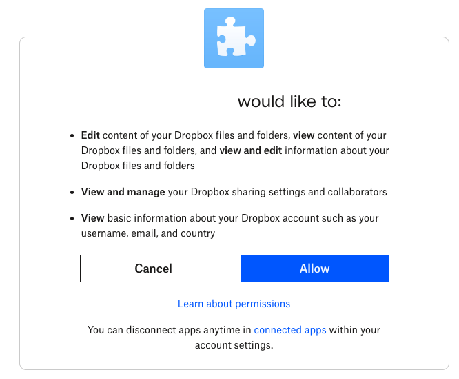 9. If asked to login, use the Dropbox account you want to store your data in.
