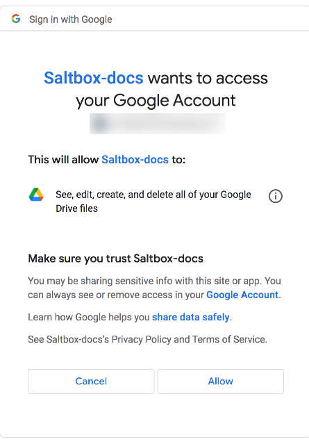 12. If asked to login, use the Google Drive account you want to store your data in.